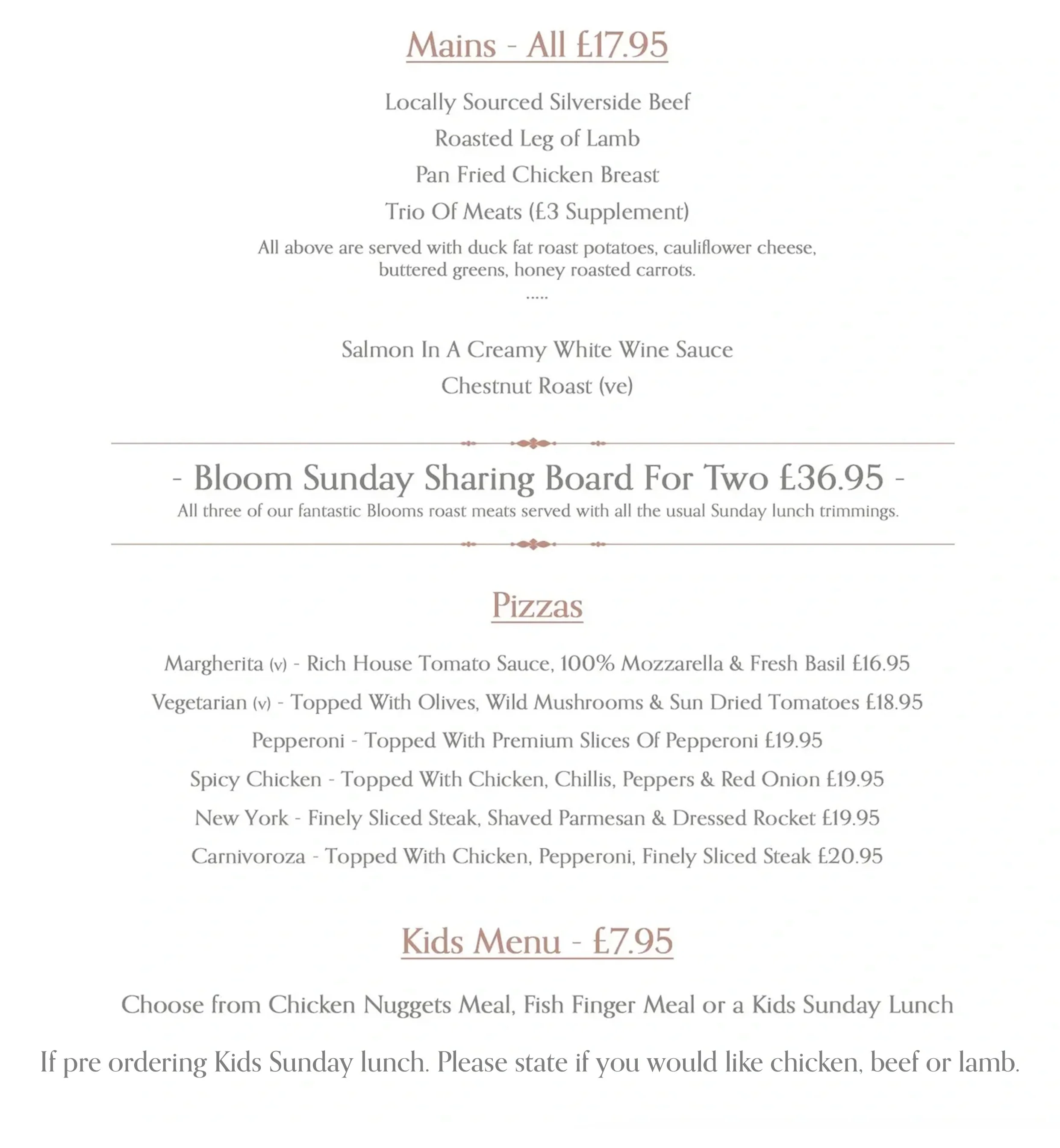If pre ordering Kids Sunday lunch. Please state if you would like chicken, beef or lamb.