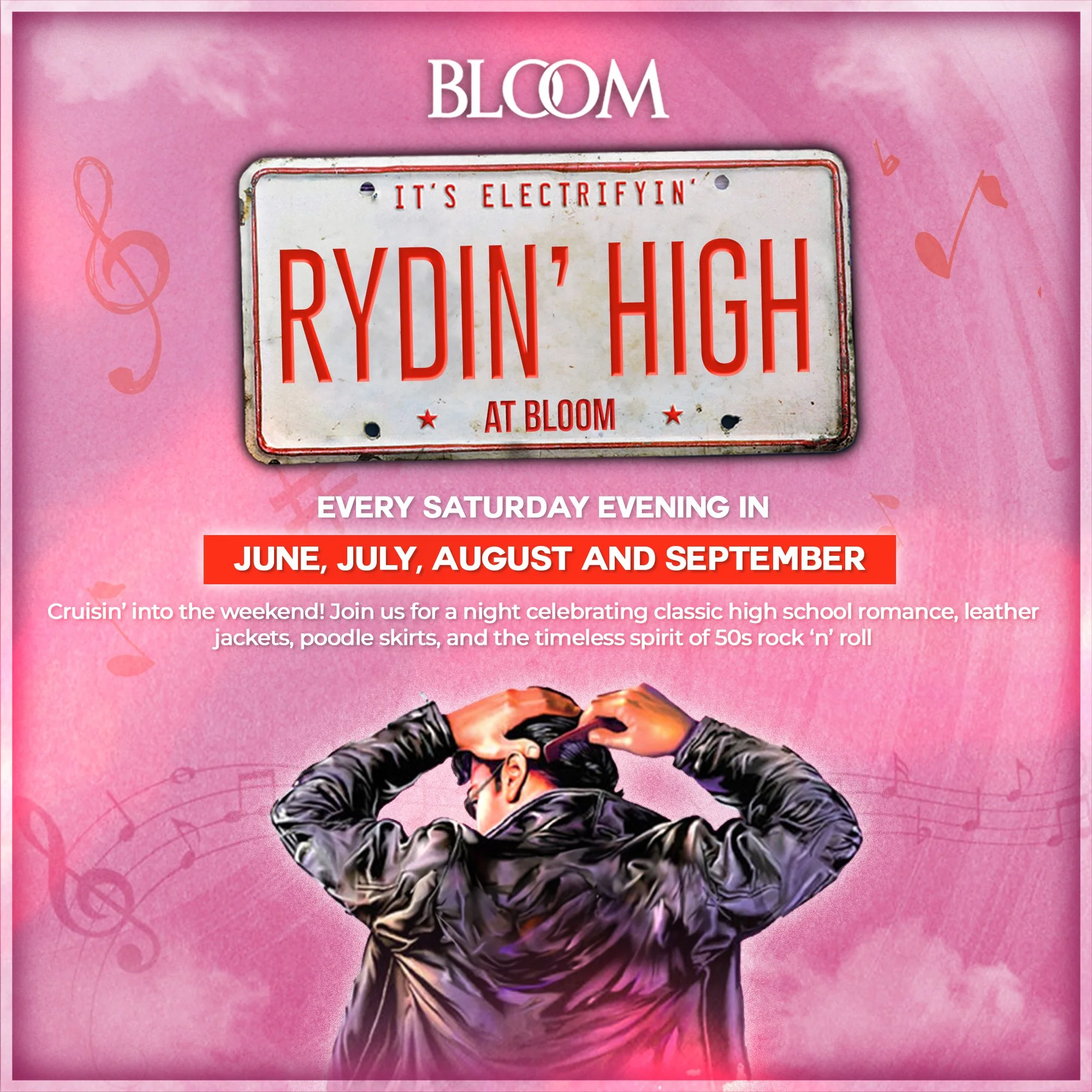 If you love retro fun, sock hops, and feel-good singalongs, this is the night out for you! Rydin’ High Saturdays is packed with dazzling performances, audience participation, and all the music, dancing, and nostalgia that will keep you on your feet all night long. Slick back your hair, practise your hand-jive, and head to Bloom for a fantastic evening full of energy, fun, and rockin’ retro vibes!